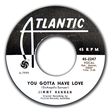 your copy doesn't look like this, you don't have an original. MB $25 187. Jimmy Hannan (backing vocals by The Bee Gees) "You Gotta Have Love/Beach Ball" ATLANTIC 2247 M- White label promo MB $25 188. Thurston Harris And The Sharps "Little Bitty Pretty One/I Hope You Won't Hold It Against Me" INTRO 6099 VG+ TRUE FIRST LABEL, FIRST PRESSING before it hit big on ALADDIN. I
