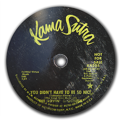 Baby Home" CAMEO 345 M-/VG+ WHITE LABEL PROMO with xol on B-side MB $50 238. The Lovin' Spoonful "You Didn't Have To Be So Nice/BLANK" KAMA SUTRA KA 205 VG Super scarce one-sided thin plastic PROMO COPYI have