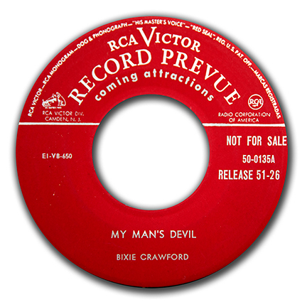 56. Bixie Crawford "My Man's Devil/Waiting Around" RCA VICTOR 50-0135 MINT RED AND SILVER PREVIEW RECORD MB $150