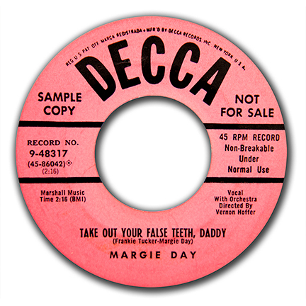 64. Margie Day "Take Out Your False Teeth, Daddy/I'm Too Busy Crying" DECCA 48317 M- PINK LABEL PROMO MB $100
