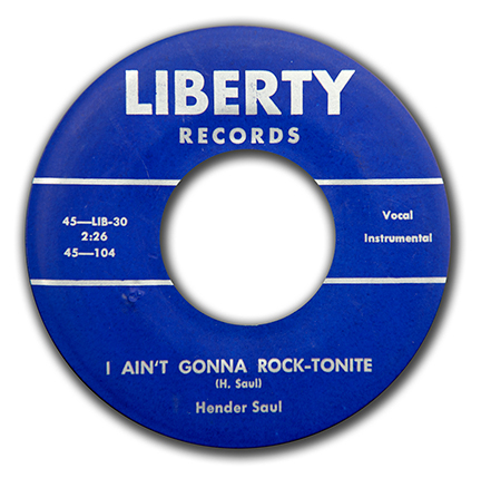 4. Hender Saul"I Ain't Gonna Rock-Tonite /One Step Away" LIBERTY 104 M-/VG+ Wonderful!!! Old time dealer, Dennis West (now deceased), had a small box of these 40 years ago . . . all long gone into collections. This is my second copy. MB $800