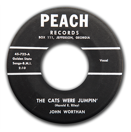 8. John Worthan "The Cats Were Jumpin' / I Wrote You A Letter" PEACH 722 M-/VG+ WILD AND CRAZY ROCKER from JEFFERSON, GEORGIA! Almost never for sale and the first one I have had in all my 50 years! MB $1,500