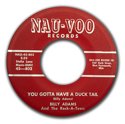 12. Billy Adams And The Rock-A-Teens "You Gotta Have A Duck Tail / Walking Star"NAU-VOO 802 M- Fabulous recordand this is the very first time in 50 years I have had a copy! MB $500