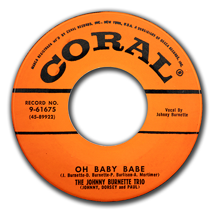 31. The Johnny Burnette Trio "Oh Baby Babe/Midnight Train" CORAL 61675 M-/VG+ MB $75