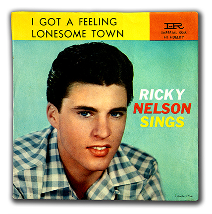Clarksville/Take A Giant Step" COLGEMS 1001 /MINT Picture sleeve only MB $30 253. The Monkees "I'm A Believer/(I'm Not Your) Steppin' Stone" COLGEMS 1002 M-/M- With PICTURE SLEEVE MB $30 259. Mouse And The Traps "Sometimes You Just Can't Win/Cryin' Inside" FRATERNITY 1005 M-/VG+ WHITE LABEL PROMO with PICTURE SLEEVE MB $50 262. Ricky Nelson "Ricky EP with Cover" VERVE EPV-5048 M-/M- BEAUTIFUL COPY MB $50 264. Ricky Nelson "I Got A Feeling/Lonesome Town" IMPERIAL 5545 /MINT PICTURE SLEEVE ONLY MB $20 273. Alfred Newman "She Loves The