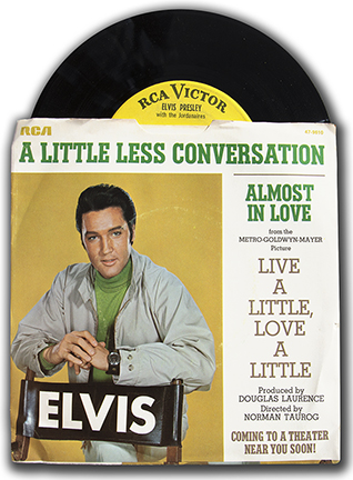 PROMO with PICTURE SLEEVE MB $50 294. Elvis Presley "Big Boss Man/You Don't Know Me" RCA VICTOR 9341 M/VG+ WHITE LABEL PROMO with PICTURE SLEEVE MB $30 295. Elvis Presley "A Little Less Conversation/Almost In Love" RCA VICTOR 9610 M/VG+ YELLOW LABEL PROMO with PICTURE SLEEVE MB $30 296. Elvis Presley "The Fair Is Moving On/Clean Up Your Own Back Yard" RCA 9747 M/M- YELLOW LABEL PROMO with PICTURE SLEEVE MB $30 297. Elvis Presley "Don't Cry