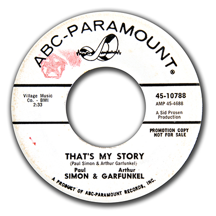 Hard To Do/As Long As I Live" RCA VICTOR 8046 M/M With PICTURE SLEEVE, Old Store Stock New MB $25 355. Neil Sedaka "Next Door To An Angel/I Belong To You" RCA VICTOR 8086 M-/M- With PICTURE SLEEVE MB $25 356. Bob Seger And The Last Heard "Persecution Smith/Chain Smokin' " CAMEO PARKWAY 465 VG+ WHITE LABEL PROMO MB $10 363. Paul Simon & Arthur Garfunkel "That's My Story/(Uncle Simon's) Tia-Juana Blues" ABC PARAMOUNT 10788 M- WHITE LABEL PROMO with small stain on A-side label MB $25 364. Simon & Garfunkel "The Sounds Of