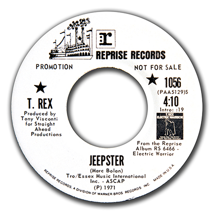 Store/ B. J. Quetzal" VJ 643 M-/VG+ WHITE LABEL PROMO MB $20 384. Tommy Steele "Fortuosity/I'm A Brass Band Today" BUENA VISTA 457 M-/MINT WHITE LABEL PROMO with PICTURE SLEEVE MB $25 385. Steppenwolf "The Ostrich/A Girl I Knew" DUNHILL 4109 M- WHITE LABEL PROMO Rare one MB $50 397. Them "Gloria/Baby Please Don't Go" PARROT 9727 VG+ ORANGE LABEL PROMO with wol on A-side and small sticker on B-side MB $20 401. Tico And The Triumphs "Motorcycle/I Don't Believe Them" MADISON 169 MINT PROMO COPY MB $50 404. Tico "Cards Of Love/Noise" AMY 876 VG MB $25 408. Tyrannosaurus Rex "Debora/Child Star" A & M 955 M- WHITE LABEL PROMO MB $25 411. T. Rex "Jeepster/Rip Off" REPRISE 1056 M- WHITE LABEL PROMO MB $20 418. The Turtles "Happy Together/Like The Seasons" WHITE WHALE 244 VG+/M- WITH PICTURE SLEEVE MB $30 419. The Turtles "You Know What I Mean/Rugs Of Woods And Flowers" WHITE WHALE 254 VG+/MINT With PICTURE SLEEVE, drill hole in label MB $25 425. The Union Gap "Woman, Woman/Don't Make Promises" COLUMBIA 44297 M-/M- WHITE LABEL PROMO with PICTURE SLEEVE, small sticker on B-side label MB $25 426. Gary Puckett & The Union Gap "Let's Give Adam And Eve Another Chance/SAME" COLUMBIA 45097 M/M- WHITE LABEL PROMO with MONO version on one side and STEREO version on the other side MB $25 432. Jerry Jeff Walker "Mr. Bojangles/BLANK" ATCO 6594 VG ONE-SIDED WHITE LABEL TEST PRESSING of the