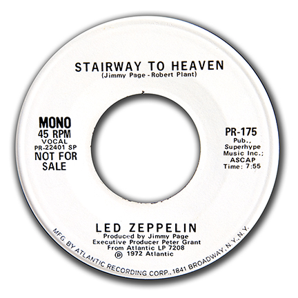 small #ol on B-side MB $20 452. Led Zeppelin "Stairway To Heaven/SAME" ATLANTIC PR-175 MINT WHITE LABEL PROMO with MONO version on one side and STEREO version on the other side, xol on B-side MB $300 456. Z Z Top "(Somebody Else