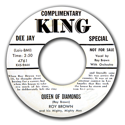35. Roy Brown And His Mighty, Mighty Men "Queen Of Diamonds/Fannie Brown Got Married" KING 4761 M-/VG+ WHITE LABEL PROMO with BIO LABEL MB $75