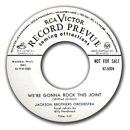 117. The Jackson Brothers Orchestra "We're Gonna Rock This Joint/I'm The Biggest Fool" RCA VICTOR 5004 VG+ WHITE LABEL PROMO MB $75
