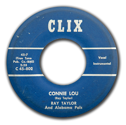 5. Ray Taylor And Alabama Pals "Connie Lou / My Hamtramck Baby" CLIX 802 VG+ MAGNIFICENT TWO-SIDER with TWO GUITAR BREAKS on EACH SONG! Legendary record that I have never had to offer before. You will look long and hard to find another copy of this for sale, ANYWHERE!! MB $1,000