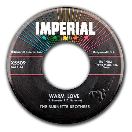 38. The Burnette Brothers "Warm Love/My Honey" IMPERIAL 5509 M- Small sticker removal residue MB $50