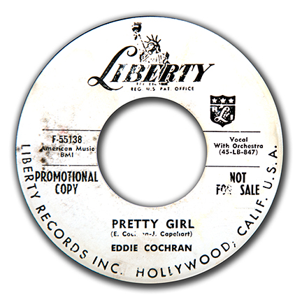 50. Eddie Cochran "Pretty Girl/Theresa" LIBERTY 55138 VG Label stain as shown on A-side, one of his toughest Liberty releases MB $20