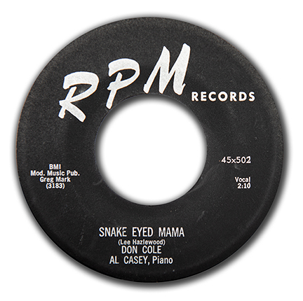 56. Don Cole With Al Casey On Piano "Snake Eyed Mama/Kiss Of Love" R P M 502 M-/VG+ Al Casey on Guitar on B-side MB $50